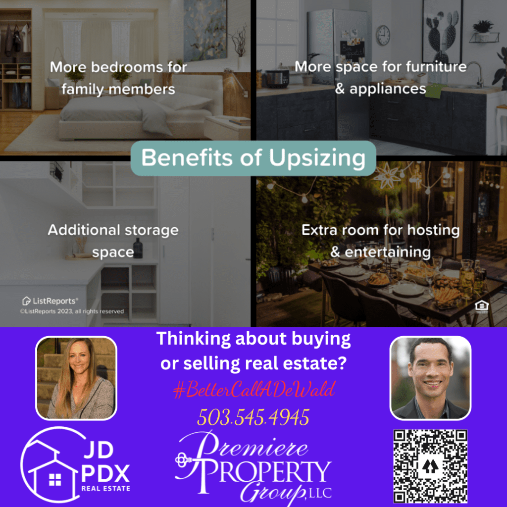 - Flexibility for future needs: Upsizing your home provides flexibility for future needs. Whether it’s accommodating a growing family, caring for aging parents, or creating space for a home-based business, having extra square footage allows you to adapt to changing circumstances without the need to relocate.